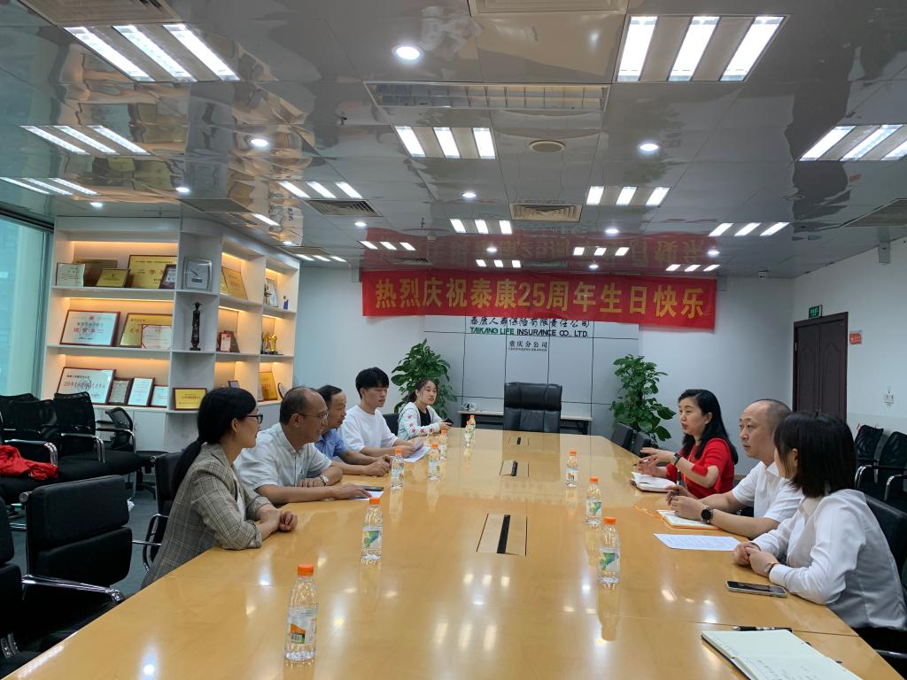 2021年8月27日上午,2003网站太阳集团党委书记、副院长王建明、保险系主任谭湘渝及就业联络员兰丽娟带领实践团队赴泰康人寿保险有限责任公司重庆分公司开展“小我融入大我 青春献给祖国”专项调查社会实践活动。泰康人寿重庆分公司人力资源部经理周蔚然、第二本部培训部经理陈祥龙以及2019届保险专业毕业生陶明月等对实践团的到来表示热烈欢迎,并积极参与到访谈与问卷调查项目中。