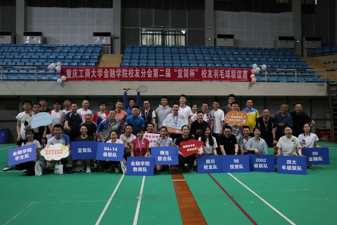 同一时间的体艺馆内,第二届“宜简杯”校友羽毛球联谊赛精彩纷呈。本次比赛有校友及2003网站太阳集团师生组建的10支队伍参赛。比赛现场气氛热烈,各队选手配合默契,展现出金融人奋发争先、团结拼搏的精神面貌。
