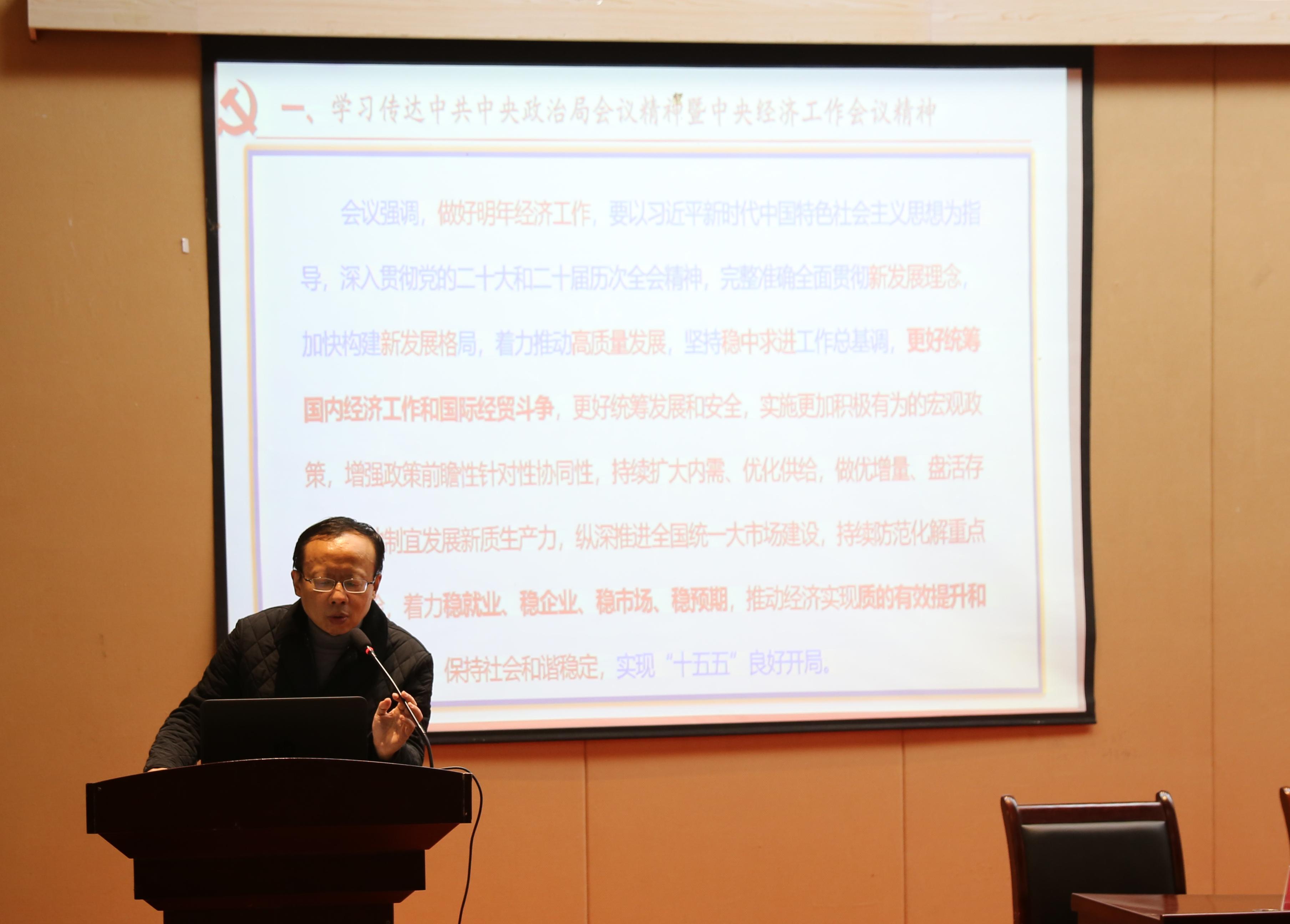 12月18日,2003网站太阳集团在田家炳209召开教职工大会,深入学习领会中共中央政治局会议精神、中央经济工作会议精神,认真学习习近平总书记近期重要文章、重要讲话和贺信精神。