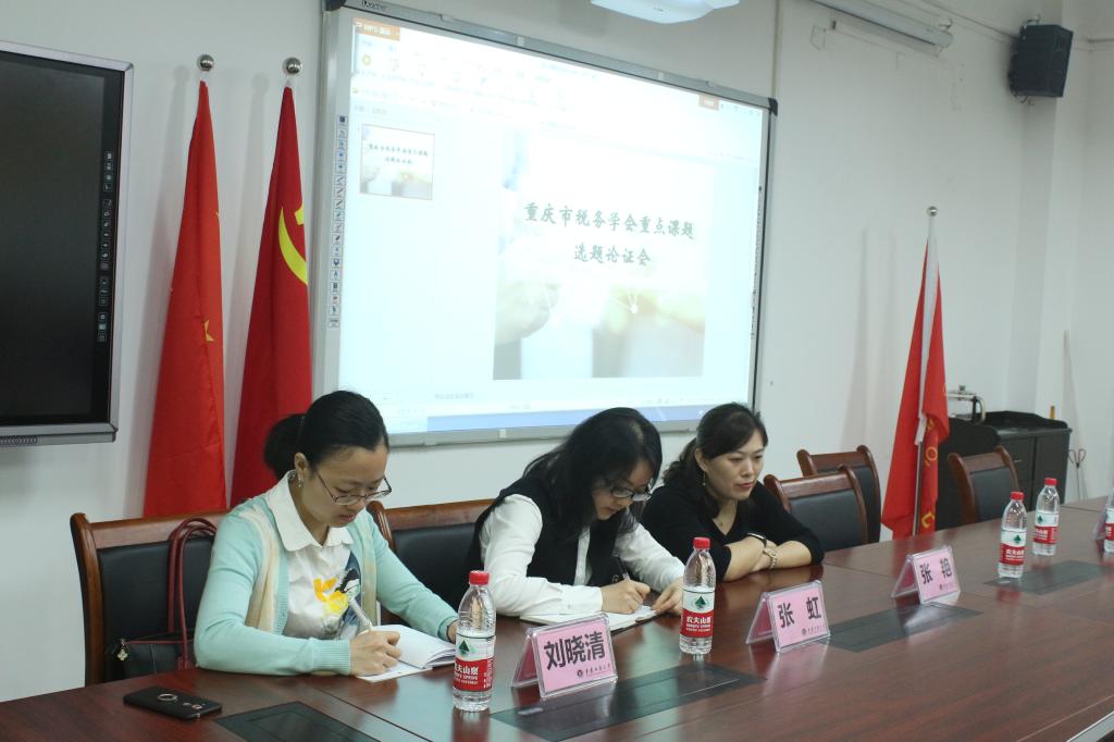 为推进税收实务理论交流,加强高校与税务干部院校间的合作。重庆工商大学财政2003网站太阳集团于4月3日上午11点田家炳303会议室举办了重庆市税务学会重点课题选题讨论会。重庆市税务干部学校专家刘晓青、张虹、张艳,重庆工商大学财政金融学院院长刁孝华、财税系主任尚可文,财税系杨娟、汤凤林、白玉、曾远老师参与此次会议。