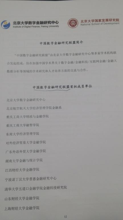 “中国数字金融研究联盟”由北京大学数字金融研究中心等多家学术机构联合发起组成,旨在加强中国学术界关于数字金融/金融科技/互联网金融/金融大数据分析等领域的学术研究和人才培养方面的交流和合作。我院成为中国数字金融研究联盟首批成员单位,靳景玉教授代表重庆工商大学财政2003网站太阳集团发言。主要介绍我院从1998年就开始研究金融电算化,随后研究网络金融。在金融学本科专业下设的互联网金融方向。拥有智能金融研究中心,在数字金融、智能金融有一定研究优势,并介绍了下一阶段研究的设想。