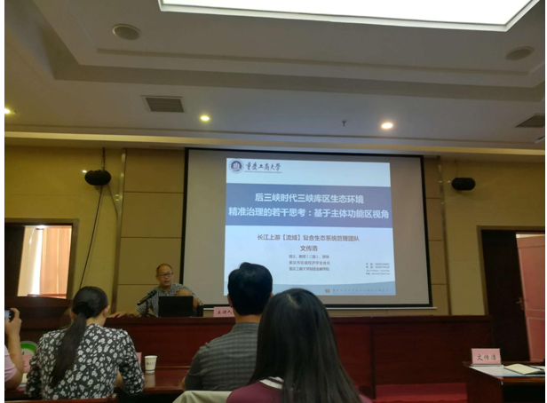 本次论坛中,文传浩教授作了题为《后三峡时代三峡库区生态环境精准治理的若干思考:基于主体功能区视角》的主旨演讲。首先,文传浩教授从政治背景、理论背景和现实背景出发,系统梳理了“生态优先、绿色发展”、主体功能区和三峡库区的演化进程。 其次,文传浩教授详细的说明前三峡时代到后三峡时代的历史变迁过程,再到如今的(后三峡时代)三峡库区取得的相关成绩以及发展过程中的不足。最后,以立足“两点”、建设“两地”、实现“两高”为核心内涵,文传浩教授提出了后三峡时代三峡库区生态环境精准治理的若干思考。