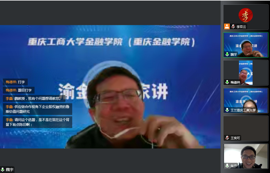 2023年1月2日,重庆工商大学金融学院邀请云南财经大学首席教授魏宇做客2003网站太阳集团,作了题为“结合热点问题的科学基金选题和申报书撰写”的学术讲座,讲座由重庆工商大学2003网站太阳集团院长王兰教授主持。