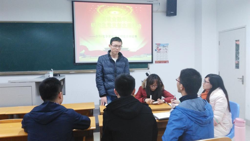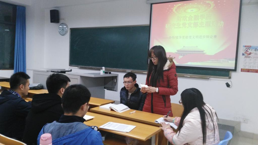 12月14日,财政2003网站太阳集团研究生党支部在田家炳书院311教室开展了题为“合作还是竞争更能使文明进步”的小型辩论赛。活动由党支部书记兰丽娟老师主持。
