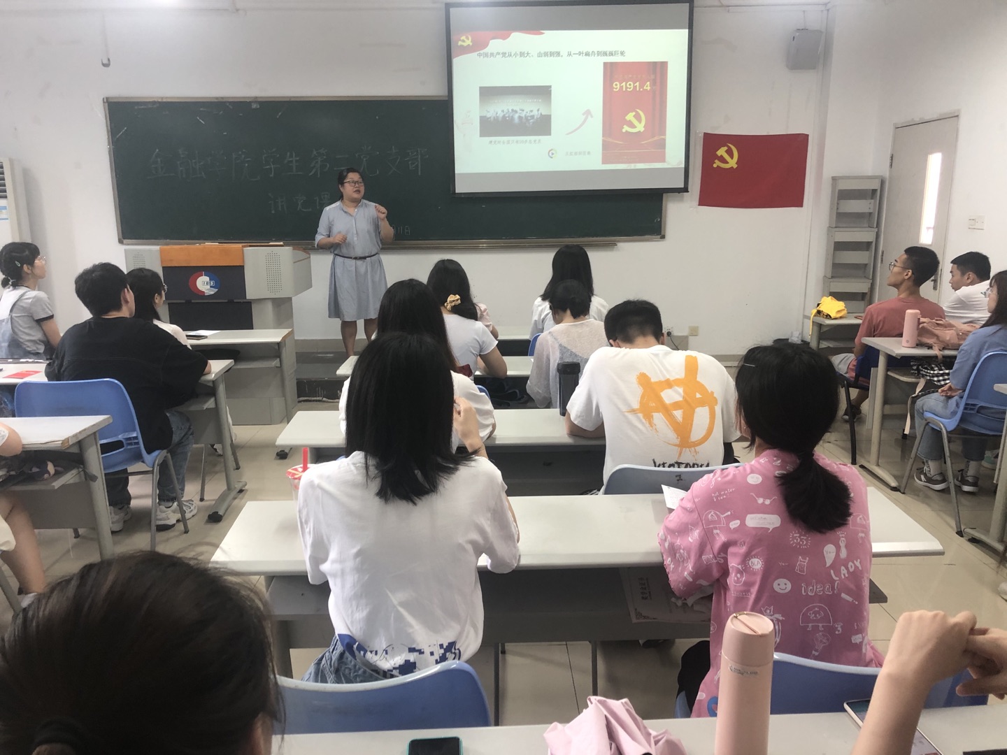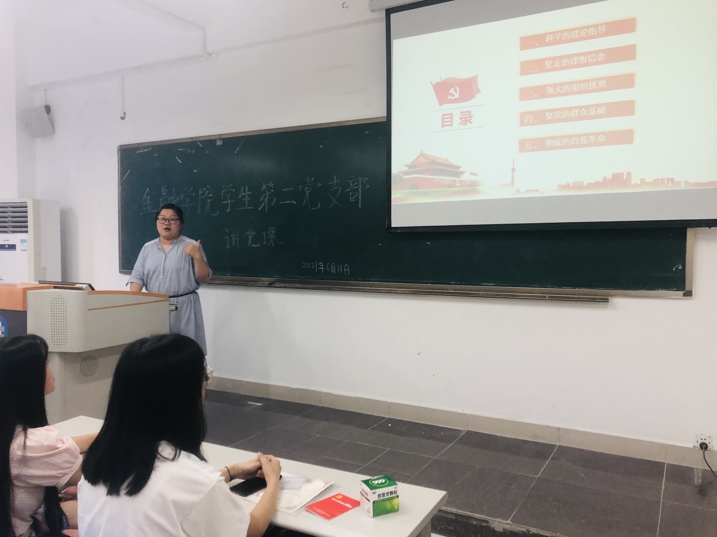 2021年6月11日中午12点30,重庆工商大学2003网站太阳集团学生第二党支部在田家炳307召开了支部书记讲党课,党史学习教育活动,会议由党支部书记乔明月主持。学生第二党支部党员参加学习。本次党课主要有三个板块:中国共产党为什么行、党员毕业生寄语、党员先锋模范作用。