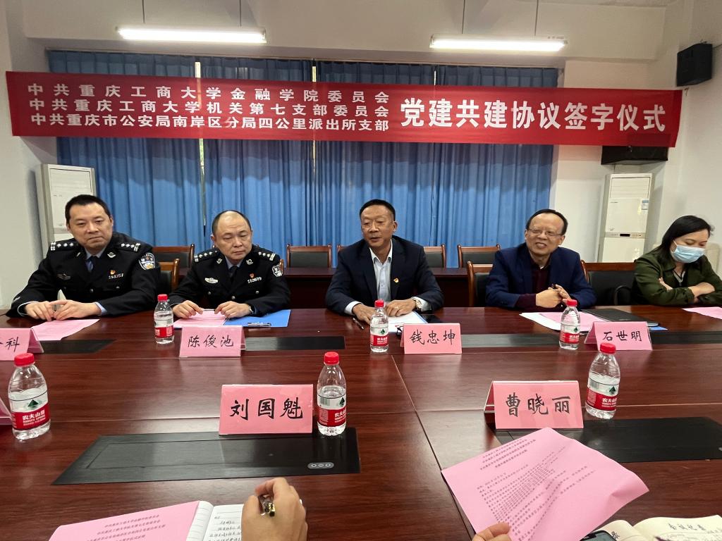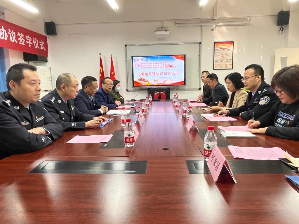 仪式上,重庆市公安局南岸区分局四公里派出所党支部书记、所长陈俊池,学校机关党委第七支部书记、保卫部部长(保卫处处长)钱忠坤,学院党委书记、副院长石世明代表三方签订了“党建共建”协议书。