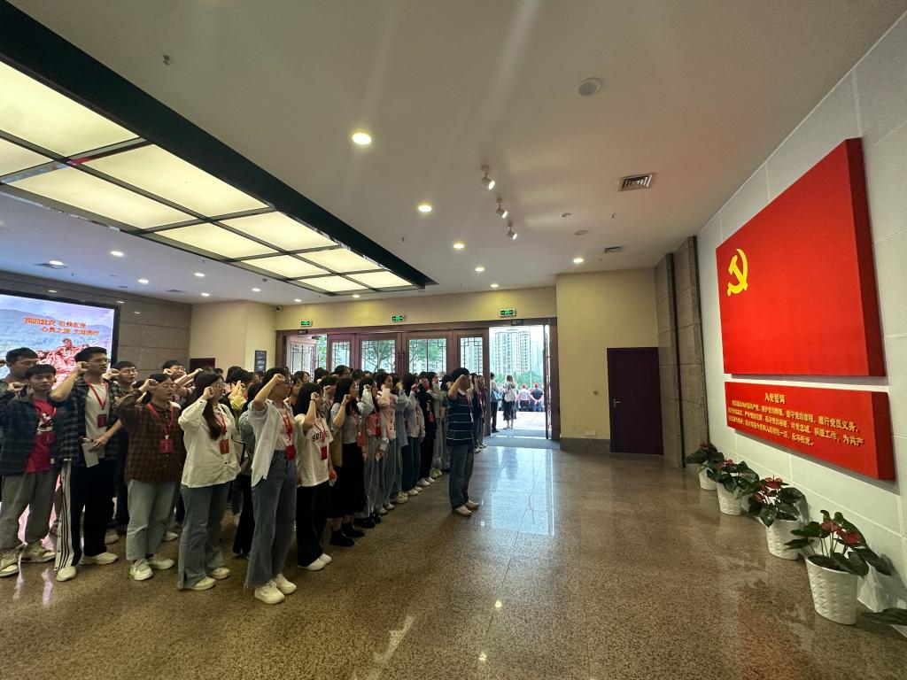 在展馆讲解员带领下,新发展党员同志们参观了“千秋红岩—中共中央南方局历史陈列馆”,详细了解中共中央南方局的发展历程;观看了“红岩记忆—数字体验厅”真实还原的“重庆大轰炸”期间渝中半岛的场景,身临其境地感受山城重庆“愈炸愈强”的抗战决心;重走红岩路,参观了中共中央南方局暨八路军驻重庆办事处大楼旧址、饶国模旧居、草房旧址等历史遗迹,深刻领悟红岩精神的深刻内涵和时代价值。参观结束后,全体新发展党员在展览大厅面对党旗,举行了庄严的入党宣誓仪式。宣誓仪式后,同学们的心情非常激动,纷纷表达了自己作为一名共产党员的自豪感。