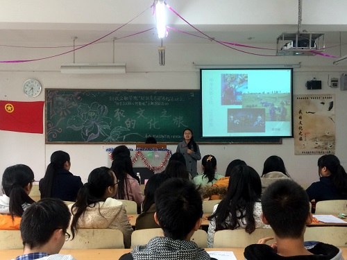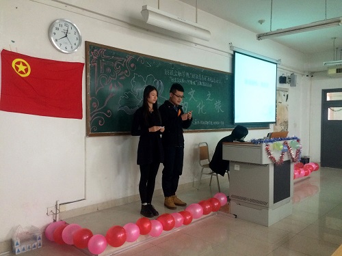 一首中国共青团团歌开启了这场文化之旅。一位同学现场教学中国结,让同学们了解到中国结的寓意,以及我国传统文化的内涵。“五十六个民族,五十六枝花”,一位少数民族的同学向大家介绍了自己民族的文化习俗,有趣的少数民族文化将大家都带进了中华文化之旅中。一场“中华文化知多少”的趣味问答游戏,充分调动了大家的积极性,使活动进入高潮。伴着《青花瓷》轻柔的歌声,活动接近尾声。白玉老师在活动最后做出总结,她表示,活动中所放映的图片及视频都很好地契合了主题,使她感受到了同学们的用心与热情。
