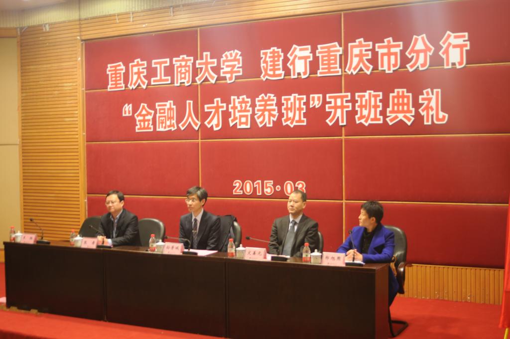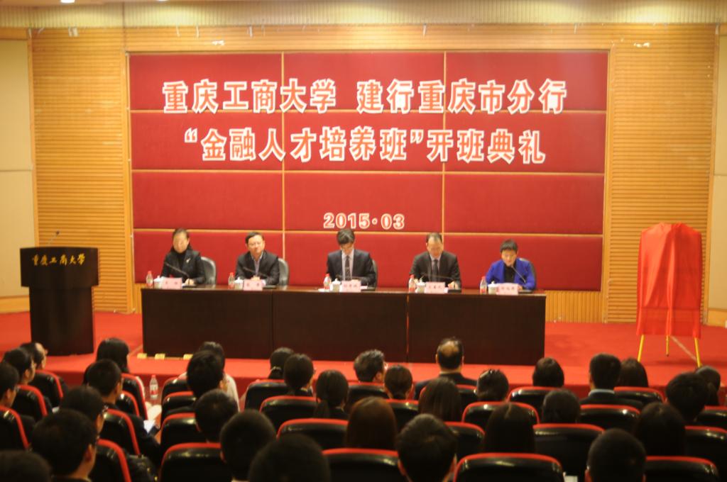 3月14日上午,重庆工商大学与中国建设银行重庆分行合作开办的金融人才培养班“建行班”开班典礼在博智楼7200学术报告厅举行。我校校长孙芳城教授、中国建设银行重庆市分行文姜元副行长、张希副行长、人力资源部王栎总经理等学校、银行领导及首届“建行班”全体学员出席典礼。