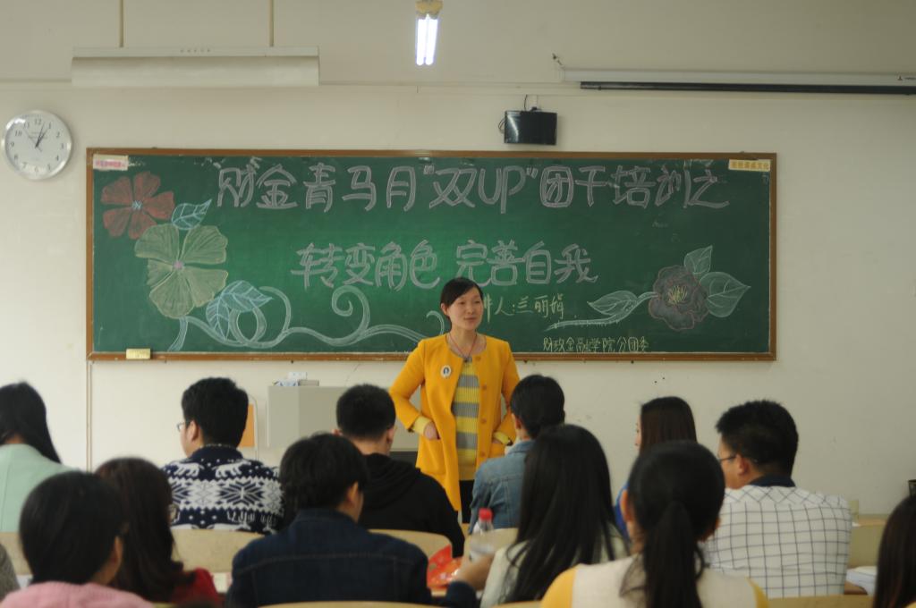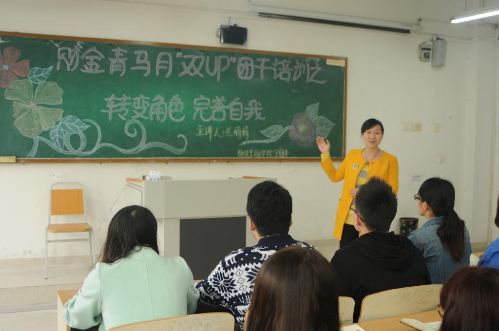 为进一步提高学生干部的工作能力与综合素质,3月17日,财政2003网站太阳集团于07212教室举行了以“转变角色,完善自我”为主题的财金青马月之“双UP”团干培训。此次培训会由分团委书记兰丽娟老师召开,财金学生会各部门部长参加培训。