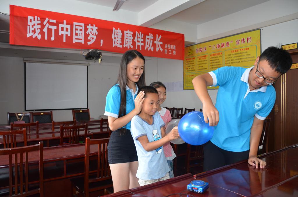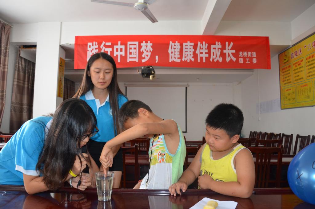 7月22日午后,载着雨后初晴,重庆工商大学财政2003网站太阳集团创新创业服务团来到涪陵区龙桥街道北拱社区与龙桥街道青年志愿者一起开展“见证奇迹”科普小课堂,为孩子们开启了探索之旅。