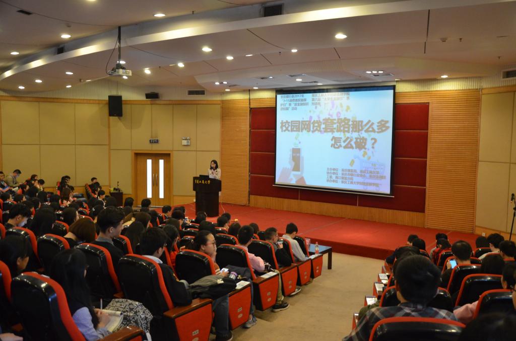 针对近年来大学生频繁被卷入校园网贷的陷阱的现象,2017年4月7日下午14点,由重庆工商大学和重庆银监局共同主办,重庆市银行业协会、重庆金融团工委、银监局两江分局协办,财政2003网站太阳集团承办的财金学院第六届“大学生金融节”系列讲座之“校园网贷套路该怎么破”,在博智楼7200学术报告厅拉开帷幕。