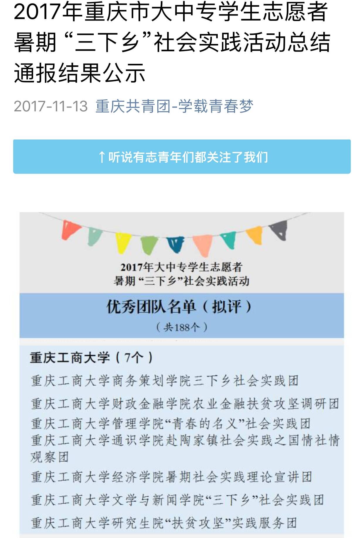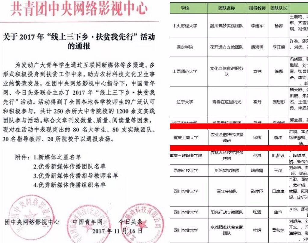 此次暑期三下乡,财政2003网站太阳集团发挥专业优势,把握时代主脉,组织了农业金融扶贫攻坚调研团,深入涪陵增福乡实地考察扶贫情况,点面结合开展多层次金融知识扶贫服务宣讲,用专业的知识和新的理念助力科技农业新发展。该团队在共青团中央网络影视中心举办的“线上三下乡,扶贫我先行”活动中荣获“优秀新媒体传播团队奖”,同时我院三下乡实践团队还获得重庆市暑期“三下乡”社会实践活动优秀团队以及校级优秀团队,除此之外还获得了校级暑期三下乡社会实践活动先进集体。