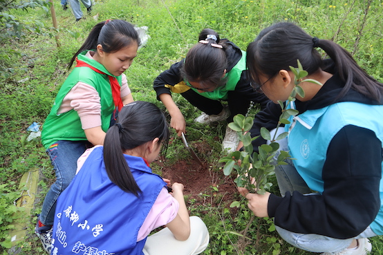绿水青山就是金山银山。2021年3月12日,是我国的第43个植树节。当日下午,重庆工商大学2003网站太阳集团“星火”义工志愿者协会和经济学院“春叶”义工志愿者协会的志愿者们前往重庆市巴南区麻柳嘴镇中心小学,与该小学六年级一班的全体同学一起开展了植树活动。