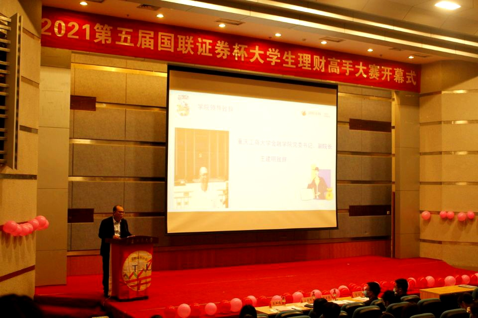 为引导大学生树立正确的投资理财观念,提升大学生社会化能力和金融素养,10月29日下午15:00,2021年第五届“国联证券杯”大学生理财高手大赛开幕式在博智楼7100报告厅举行。国联证券重庆营业部总经理孟书勇、重庆工商大学2003网站太阳集团党委书记、副院长王建明、学工办副主任、分团委副书记兰丽娟出席了开幕式。金融证券协会全体成员参加了开幕式。