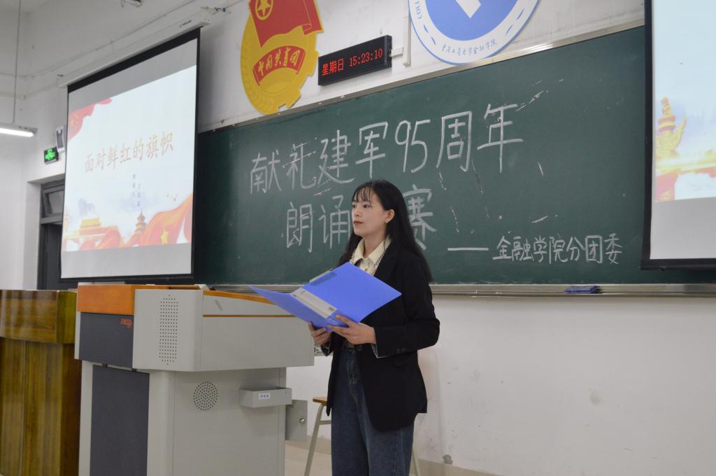 忆往昔,英雄先烈舍生取义以身许国;看今朝,倥偬一辈肩负重任砥砺前行。本次比赛规则为每组选手依次上台朗诵,约六分钟,采用100分制进行评分,以平均分为选手最终得分。首先是汤一飞朗诵的《请铭记,雾重庆》,他用慷慨激昂的声音来纪念英雄们,引起共鸣。窦明轩的《与妻书》紧随其后,他富有感情的朗诵,让观众们声临其境地感受到林觉民的爱国精神。其他选手的朗诵《可爱的中国》、《不朽》、《军旗,战士,军礼》等等表现也非常出彩,伴随着贴切主题11诵结束后,龚新洋表示将从音色、情感、语音技巧等方面进行评定,指出参赛选手选稿都较为贴切主题,并提出在今后的朗诵中要着正装,在脱稿演讲的同时多与观众交流,注意情感表达方式与语气的跌宕起伏,给选手提供了宝贵的经验。经过评委的认真讨论和评定,最终获胜的前三名分别是窦明轩,丁可心,刘萱。