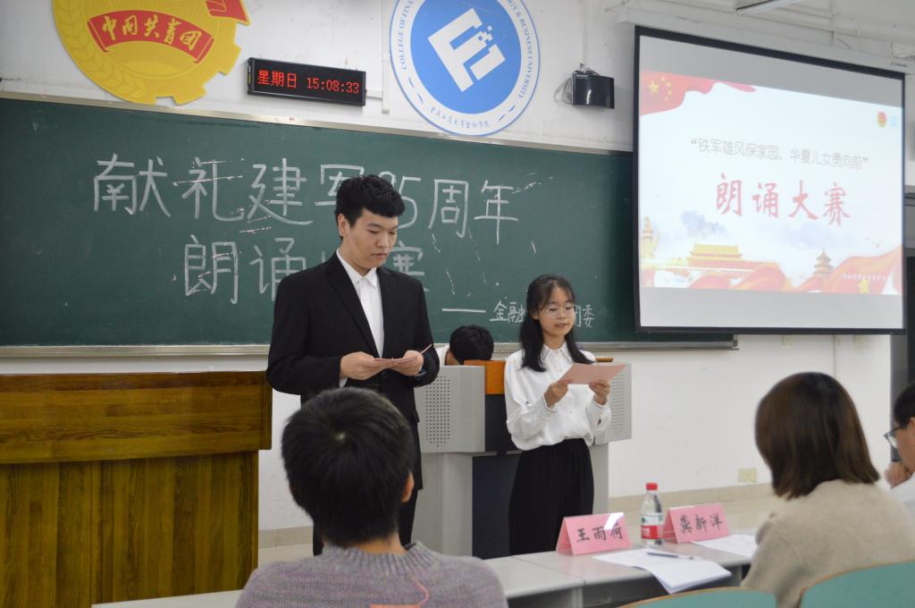 虎踞龙盘今胜昔,天翻地覆慨而慷。为庆祝建军95周年,致敬百万人民解放军战士,2021年10月31日15时,2003网站太阳集团“铁军雄风保家园,华夏儿女永向前”献礼建军95周年朗诵比赛在博智楼107圆满举行。