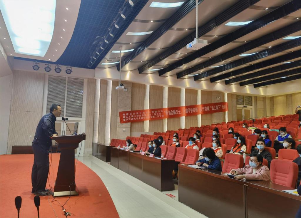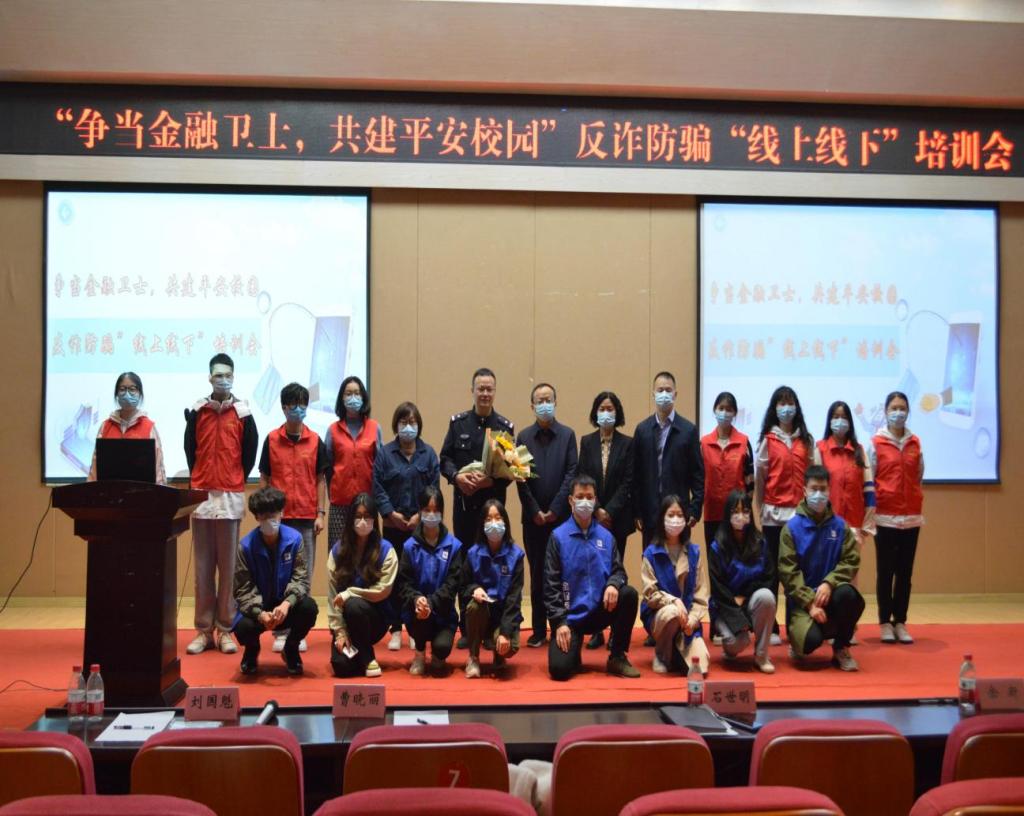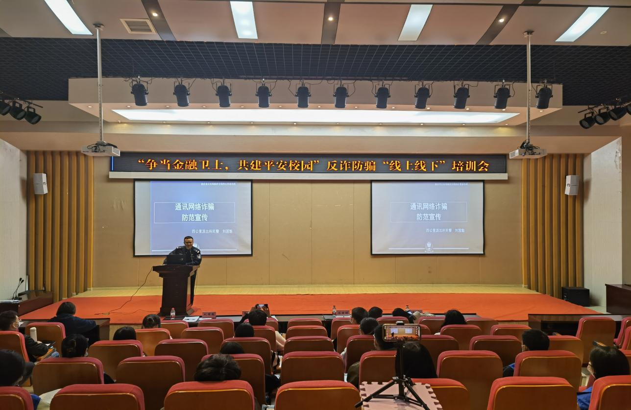 2022年10月28日,为普及防范诈骗知识,进一步提升学生的反诈防骗能力,南岸区公安分局四公里派出所、重庆工商大学党委保卫部(保卫处)以及2003网站太阳集团在田家炳209报告厅联合举行“争当金融卫士,共建平安校园”反诈防骗“线上线下”培训会。重庆市南岸分局四公里派出所警官刘国魁,校党委保卫部副部长(保卫处副处长)曹晓丽,2003网站太阳集团党委书记、副院长石世明,2003网站太阳集团党委副书记、纪委书记余新,2003网站太阳集团党委委员、专职组织员赵甫刚及全体辅导员老师出席了培训会。“金融卫士”团队及学生第二党支部(双创)代表参加了现场培训,其他同学同步线上观看直播。