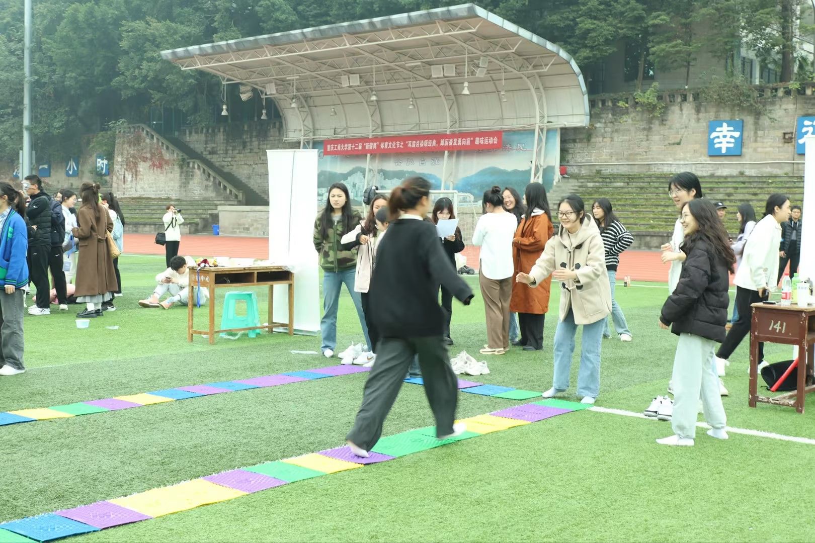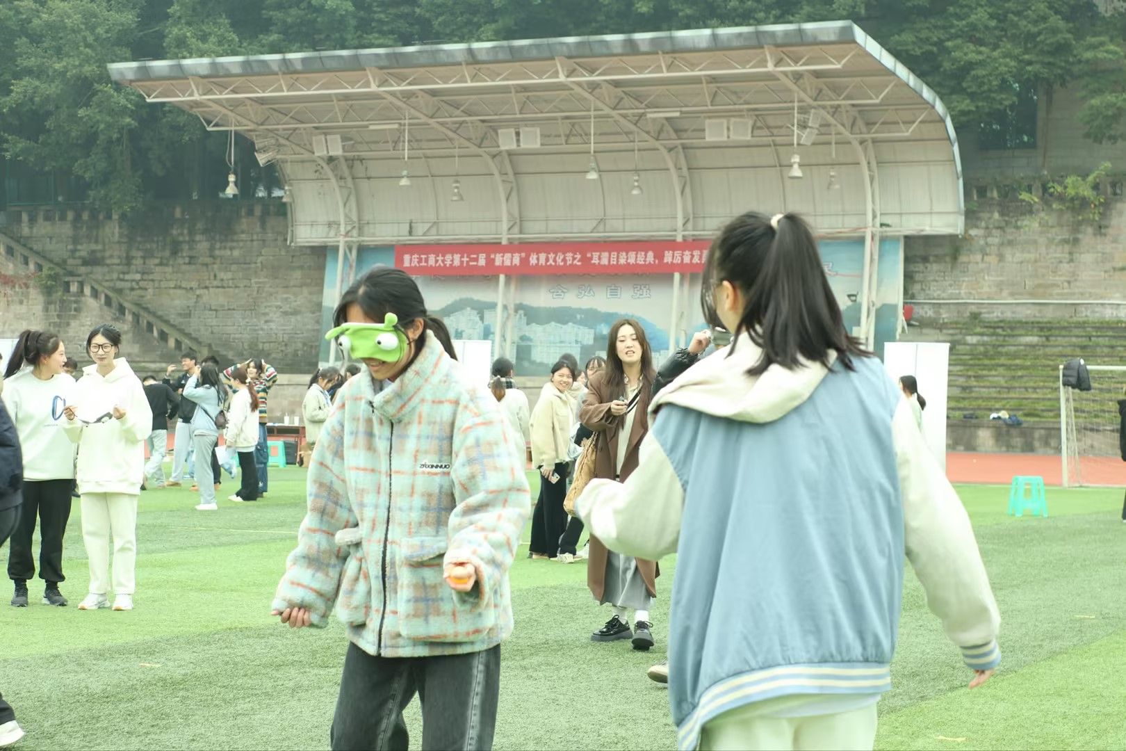 为深入学习贯彻党的二十大精神,落实立德树人根本任务,培养德、智、体、美、劳全面发展的时代新人,丰富校园文化生活,2023年12月9日,重庆工商大学第十二届“新儒商”大学生体育文化节之“耳濡目染颂经典,踔厉奋发勇向前”趣味运动会在南区操场成功举办。