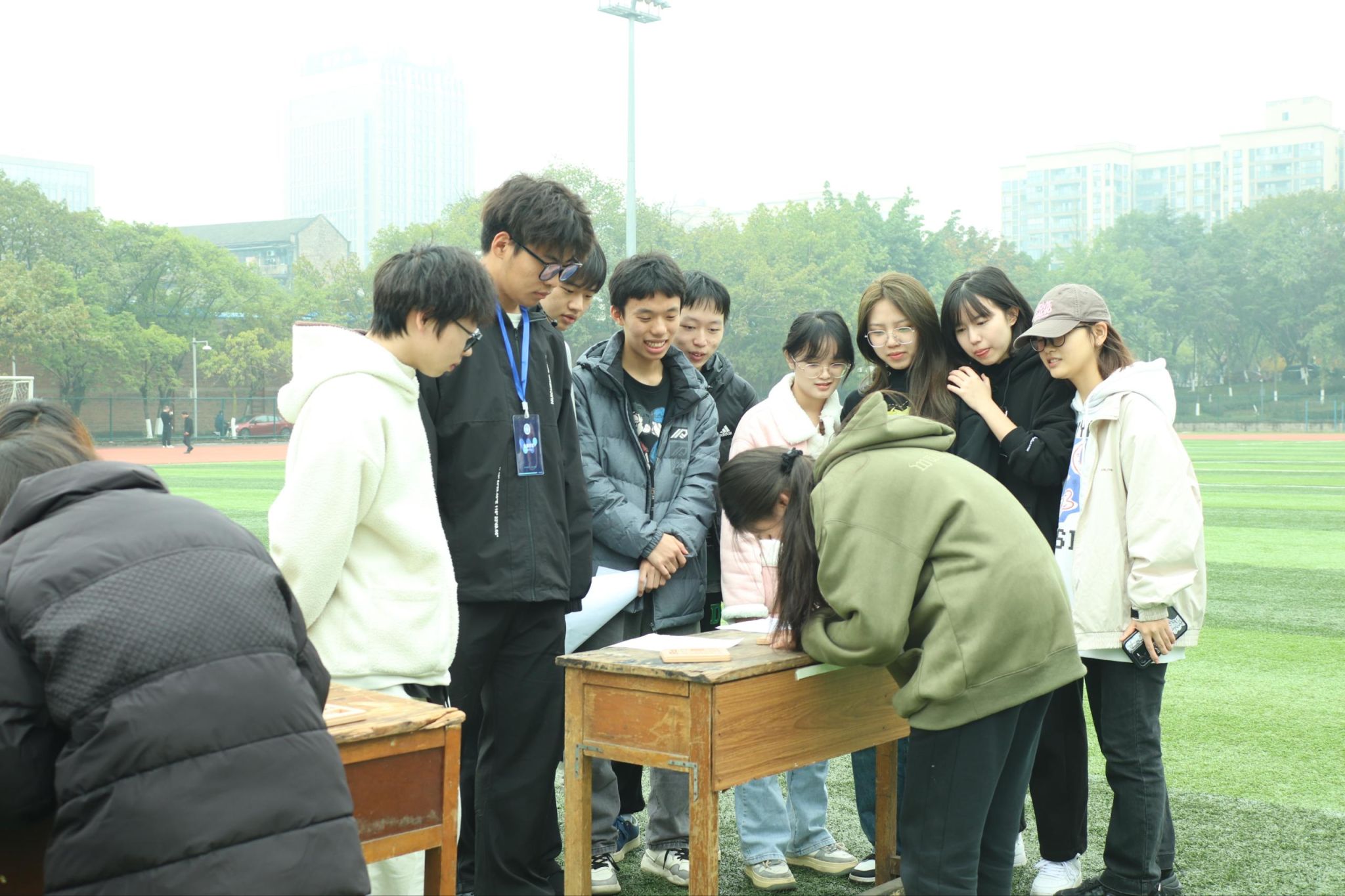 赛场上,学生们团结合作、奋力拼搏,展示了团队的力量和坚韧的品格。接力赛上他们默契配合、紧密团结;猜猜画上他们集思广益、脑洞大开;指压板上他们笑语连连、苦中作乐;跳跳跳中他们奇招尽出、各显神通。操场上洋溢着欢声笑语的同时,各学院的运动员代表们也奋勇当先、你追我赶,在活动中学习儒家文化,感受团队合作的氛围。儒家文化与体育活动的完美结合,有助于学生在锻炼中学习,在学习中锻炼。最终,“军师说的都队”荣获一等奖,“阿巴阿巴”“火箭队”“青春没有售价,疯狂就在当下”荣获二等奖,“拿不拿奖无所谓”“脆脆鲨队”“爱拼才会赢”“欢乐斗地组”荣获三等奖。