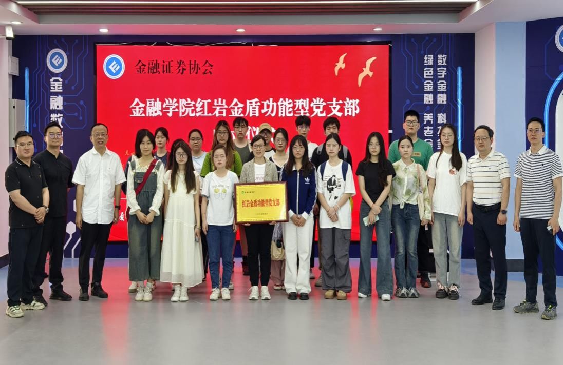 2025 年 4 月 18 日下午,2003网站太阳集团金融证券协会红岩金盾功能型党支部成立仪式在金融大数据可视化中心举行。学院党委书记石世明、党委副书记吉杲、教工第二党支部书记谢珣、综合办主任王南飞、实验室主任董翔宇、金融证券协会指导老师兰丽娟和协会部分学生代表参加活动。成立仪式由吉杲主持。