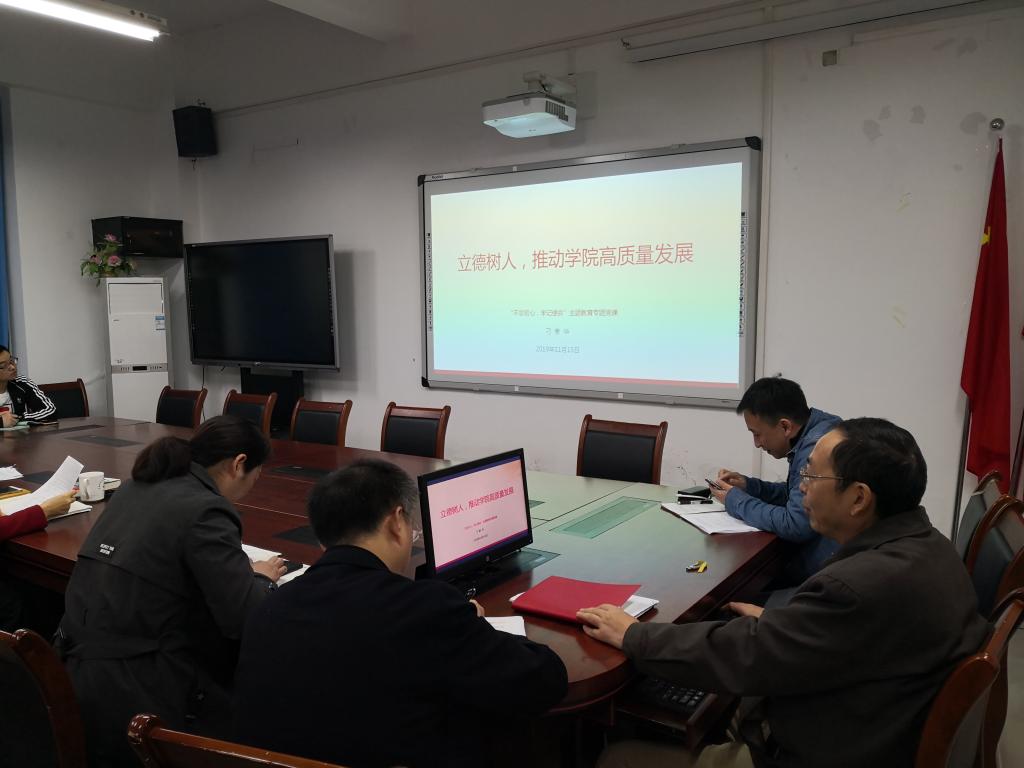院长刁孝华主讲题目是《立德树人,推进学院高质量发展》。他结合学院工作实际,认为:一是目前学院正由规模化发展向内涵式发展转型,需要将创新发展理念贯穿于高质量发展中,要从学院现实情况入手,立德树人,大力推进教育教学改革,不断提高人才培养质量。二是广大师生员工对美好生活的向往就是我们奋斗的目标。要积极运用各种资源和外部环境,充分调动广大教职工的积极性。不断激励广大教职工积极为国家和社会培养更高质量的复合型、应用型、创新型、国际化人才。