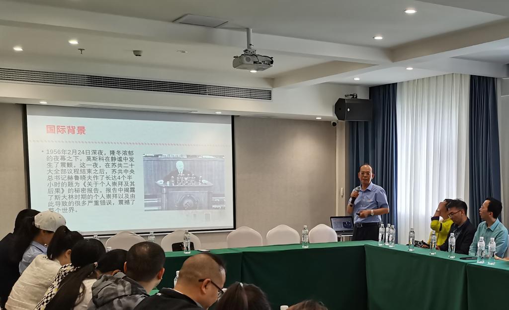 第一阶段首先由王建明书记向全体党员上了一堂题为《党对社会主义建设道路的探索》的专题党课。他系统讲述和回顾了中国共产党领导中国人民进行社会主义建设道路探索的历程,认为取得的建设成就堪称辉煌,历经的艰辛坎坷刻骨铭心,积累的认识成果弥足珍贵。与会党员纷纷表示:对于党带领全国各族人民艰辛探索的社会主义建设道路的历史,我们应当永远铭记;对于共和国老一辈领导人的探索精神,我们应当永远缅怀并致以崇高的敬意!