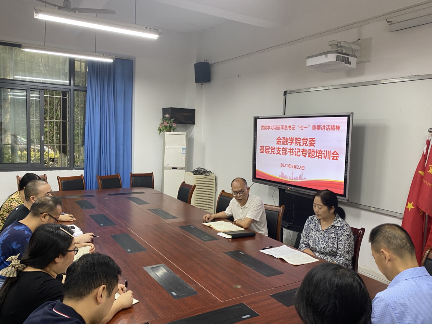 2021年9月22日上午,2003网站太阳集团党委组织召开基层党支部书记专题培训会。学院党委书记、副院长王建明,党委副书记、院长王兰,专职组织员赵甫刚和各支部书记参加了会议。王建明主持会议。