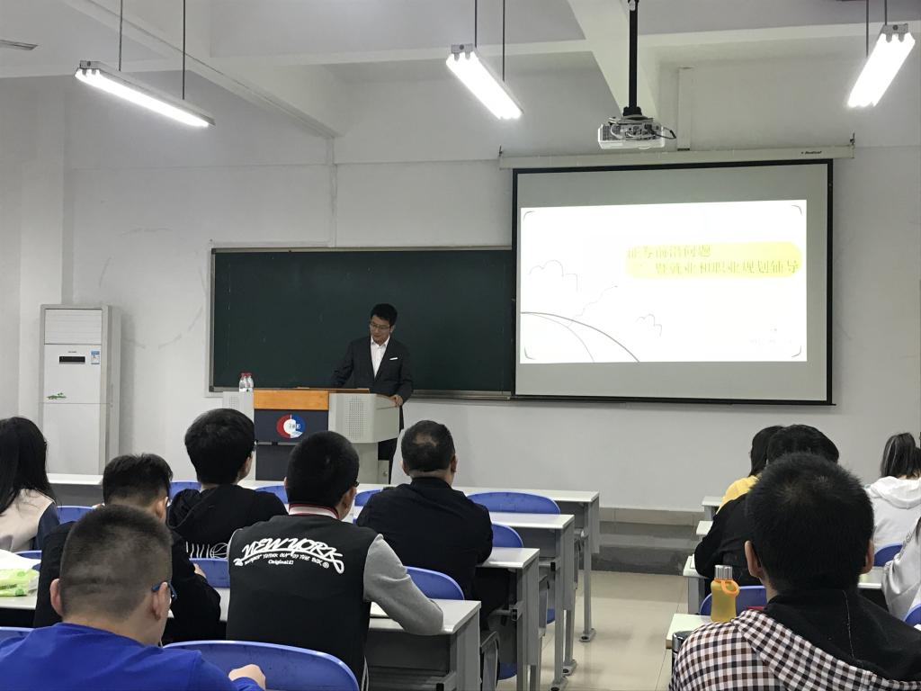 2018年4月25日下午3点30分,华泰证券重庆营业部刘勇总经理在田家炳教学楼50406教室,以证券前沿问题暨就业和职业规划辅导为题,为2016级和2017级的学硕及专硕的同学们作了一场干货满满,令人受益匪浅的讲座,讲座由学院党委书记杨萍主持。