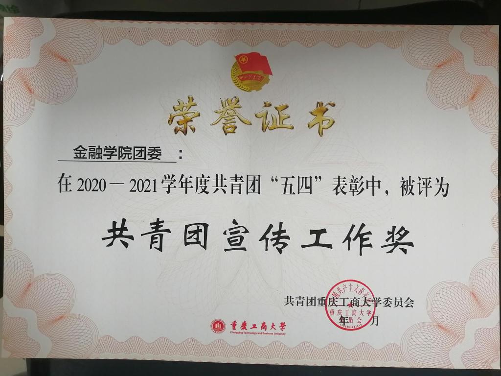 4月30日下午,我校2021年五四表彰大会在南岸校区剧场隆重举行。校团委书记杨娟宣读《共青团重庆工商大学委员会关于表彰2020-2021学年先进集体和个人的决定》,随后为获奖集体和个人代表进行颁奖。2003网站太阳集团斩获五四红旗团委称号、荣获共青团宣传工作奖,同时我院分团委书记、学生会、志愿者协会分别被评选为优秀团委书记、优秀学生会和优秀义工志愿者分会。