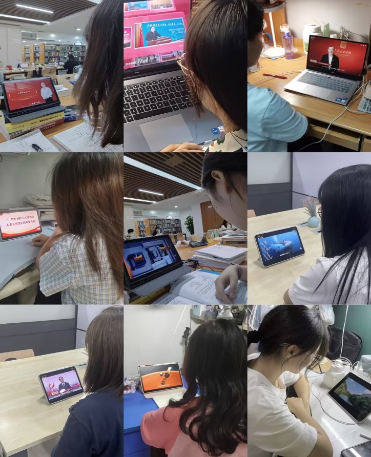 李冰雪同志表示身为一名大学生,必须深入学习贯彻习近平文化思想,践行“两个结合”,助力推动中华传统文化创造性转化、创新性发展。教育是培养未来社会建设者的基础,它关乎国家的长远发展和民族的未来。李雨欣同志表示我们要时刻保持清醒的头脑,坚定理想信念,积极投身到各项事业中去,为实现中华民族伟大复兴的中国梦贡献自己的力量。同时也要注重自身素质和能力的提升,不断学习新知识、新技能,以更好地适应时代发展的需要。张嘉琦同志表示教育、科技、人才是全面建设社会主义现代化国家的基础性、战略性支撑。面向未来,破解区域协调发展难题,须从教育、科技、人才“三位一体”统筹推进的新视角,强化三者之间的契合度、提高支撑高质量发展的匹配度、增强服务国家战略的贡献度