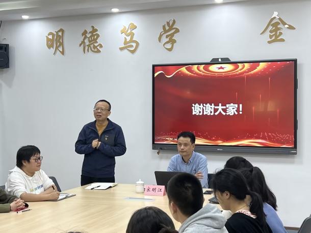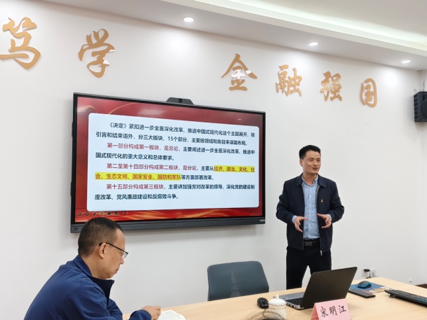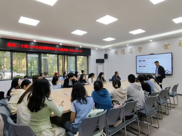 2024年10月15日下午,重庆工商大学马克思主义学院党委书记、副院长宋明江教授应邀到2003网站太阳集团,为2003网站太阳集团师生宣讲党的二十届三中全会精神。宣讲会在田家炳317会议室举行。学院领导、教师代表、校级样板支部学生第二党支部党员、学生代表共50余人参加了宣讲会。宣讲会由2003网站太阳集团党委书记石世明主持。