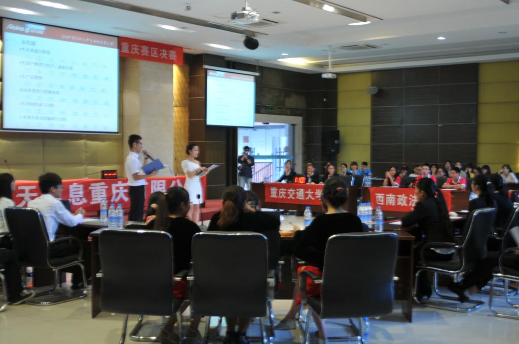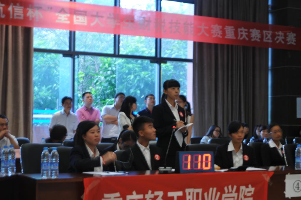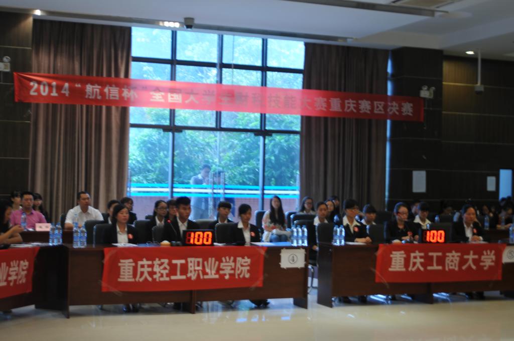 ,由我院承办的2014年“航信杯”全国大学生财税技能大赛重庆赛区决赛在田家炳408会议室举行,来自重庆市八所高校的参赛队伍相聚于此,上演了一场智慧与技能的巅峰对决。我院常务副院长莫云,党总支副书记刘代成,航天信息股份有限公司技服中心经理杨克辉、齐宏、张渝,航天信息重庆公司杨忠部长,重庆大学原审计处廖忠友老师作为本次比赛的评委、嘉宾莅临现场。