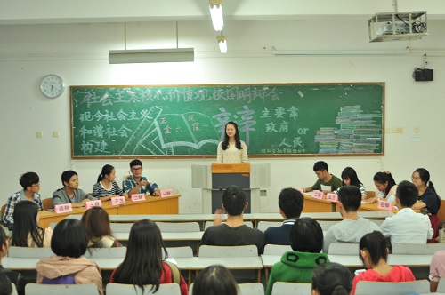 为帮助学生正确认识社会主义核心价值观的战略意义和深刻内涵,10月26日,财政2003网站太阳集团“社会主义核心价值观——校园明辨会”以班级辩论赛的形式在博智楼401—403教室举行。
