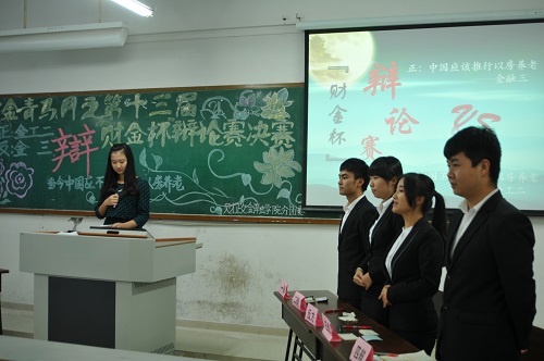 11月14日下午,经过激烈的角逐,“财金杯”辩论赛终于迎来决赛。正方金融工程二班代表队与反方金融三班代表队,围绕“当今中国应不应推行以房养老”的辩题展开冠军争夺之战。财政2003网站太阳集团党总支刘代成副书记、学团办主任杨佳妮老师、分团委书记兰丽娟老师,学生党支部书记文理、白玉、周琴老师莅临本次决赛。