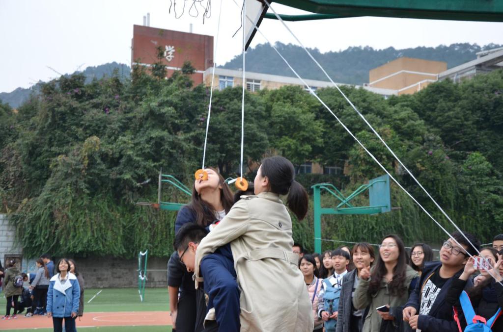 此次的趣味运动会以中国传统节日为轴,以分组竞赛的形式开展趣味游戏活动。“春节”片区的红包大战让不少同学连呼“过瘾”;“端午”的龙舟改成了在旱地上“游走”,同学们为赢得比赛各出高招;浪漫“七夕”的天外飞仙环节,同学们走过指压版,套上道具编织袋,开始了自己的并不易的“飞仙之旅”;“金色中秋”的“月饼大战”环节充满了欢声笑语,诱人的月饼近在眼前,却难以到嘴边;最后的游戏环节“月光迷城”则处处藏玄机,充分考验了团队的协作能力。四个不同的小组先后到达迷城的终点,趣味运动会也接近了尾声。