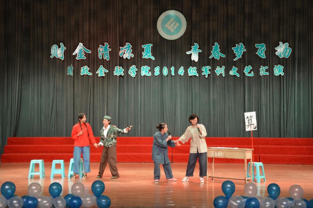 盛夏的大雨送来难得的清凉,华灯初上的体艺馆热闹非凡。刚从训练场走下的同学们忙里偷闲,一场精彩纷呈的晚会在同学们的欢呼声中拉开帷幕。新颖的小人舞表演让观众眼前一亮,动感十足的热舞带动现场摇摆,伴着古筝独奏翩翩起舞的古装女子独具风韵。小品《军训狂想曲》、舞台剧《军训那年》体现着军训生活的酸甜苦辣及点滴的感动。当主持人带领大家向教官致敬时,标准的军礼、坚毅的眼神表达出大家对教官浓浓敬意和感谢。欢乐活泼的氛围也带动平日里严肃认真的教官们加入互动,带领同学们唱响铿锵有力的军歌,同学们胜利完成军训的决心都融入于嘹亮的歌声中。