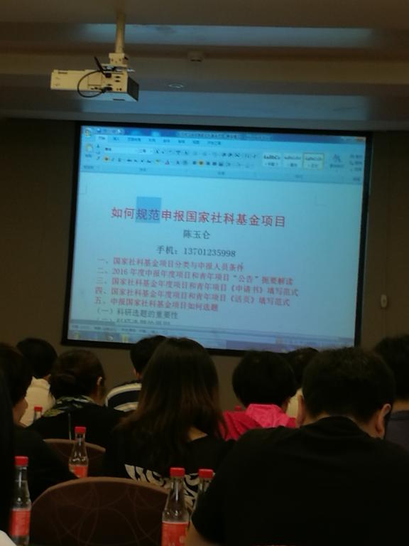 通过资深专家的讲解及现场的互动交流,深入了解了近两年国家社科项目申报的特点和规律,社科基金项目评审要求,及结题的相关要求,为我院老师以后成功申报国家社科基金及顺利结题积累了宝贵的经验。