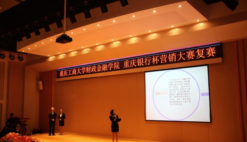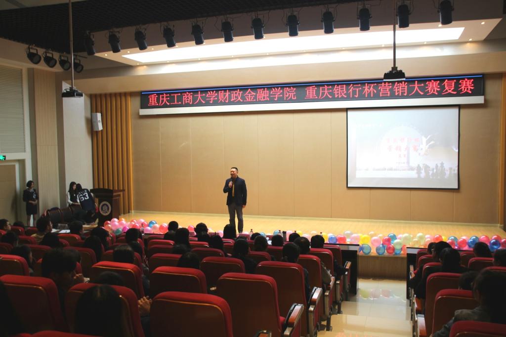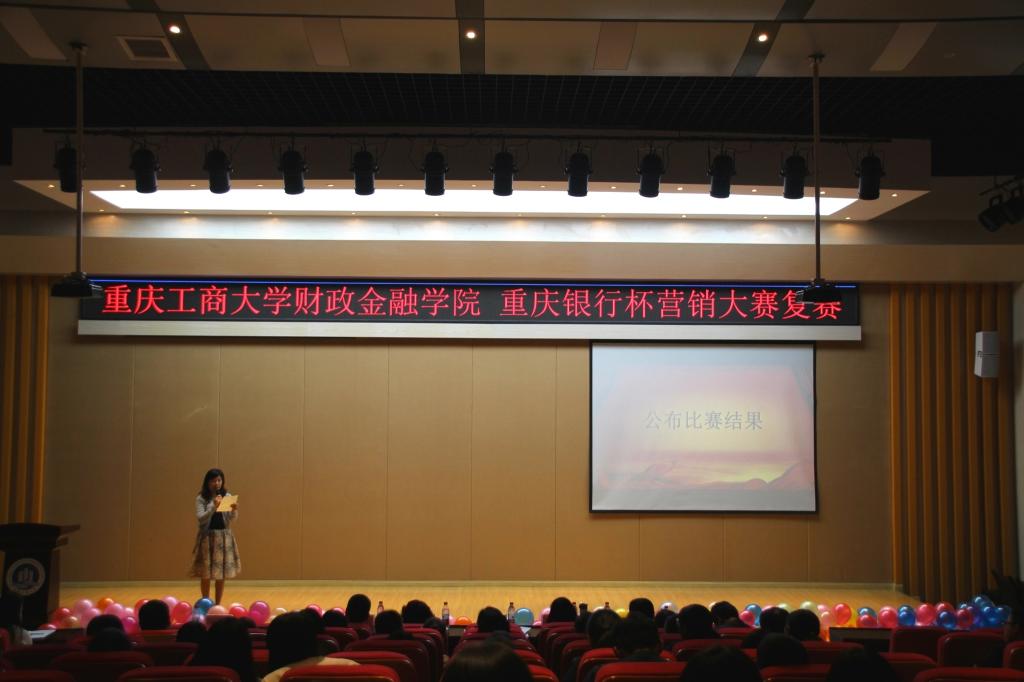2016年10月14日,为弘扬财金文化,彰显财金特色,重庆工商大学财政2003网站太阳集团于田家炳209举行了重庆银行杯营销大赛复赛。重庆工商大学财政2003网站太阳集团常务副院长莫云、党总支副书记刘代成,重庆银行个人银行部副总经理陈娟女士、重庆银行巴南支行副行长张敏女士、重庆银行南坪支行行长助理周伟锋先生出席大赛。