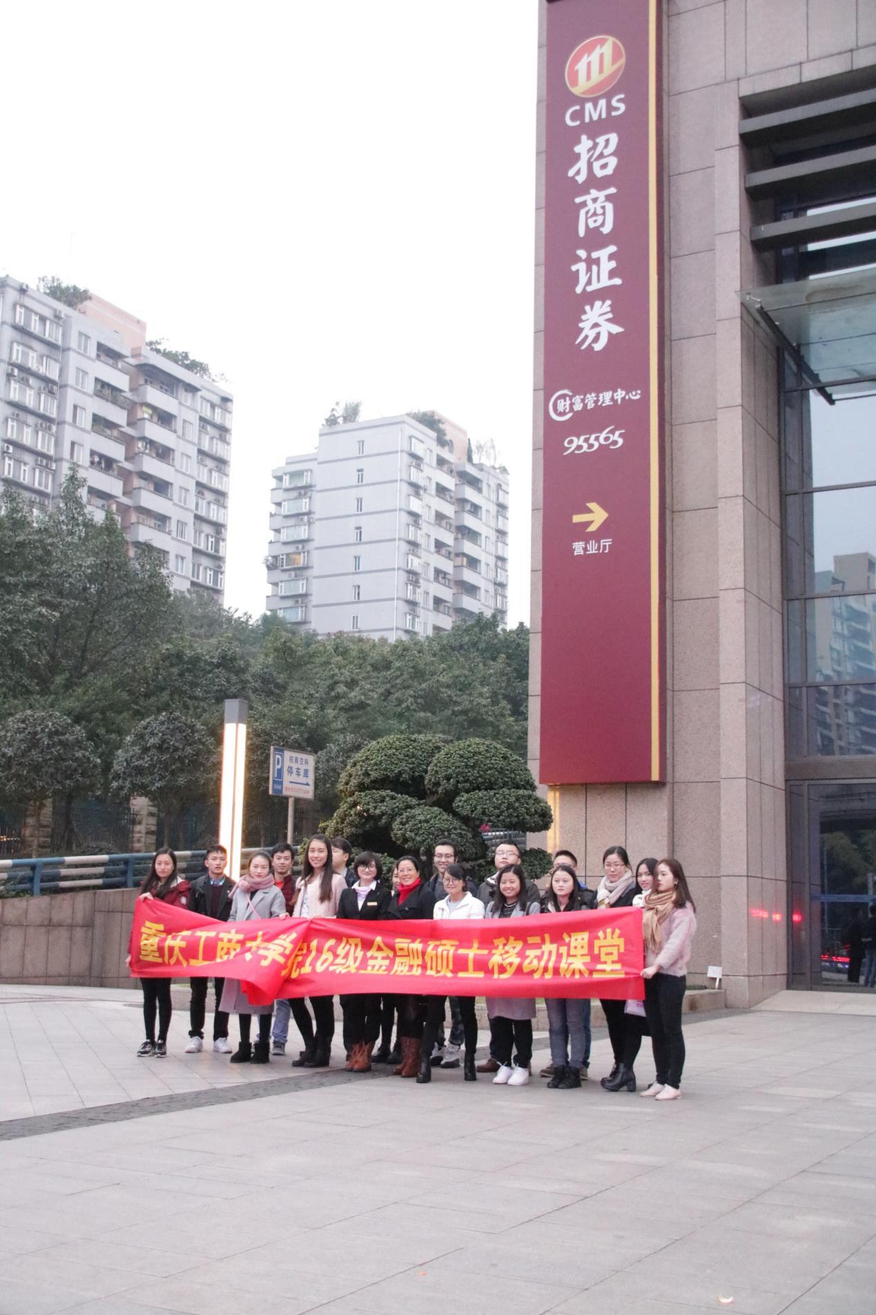最后,整个移动课堂活动在招商证券廖凤屏经理和重庆工商大学2016级金融硕士师生的大合影中圆满结束。