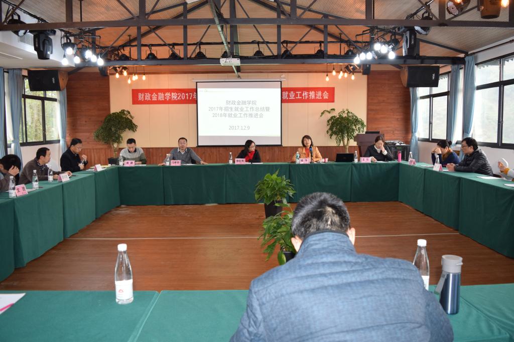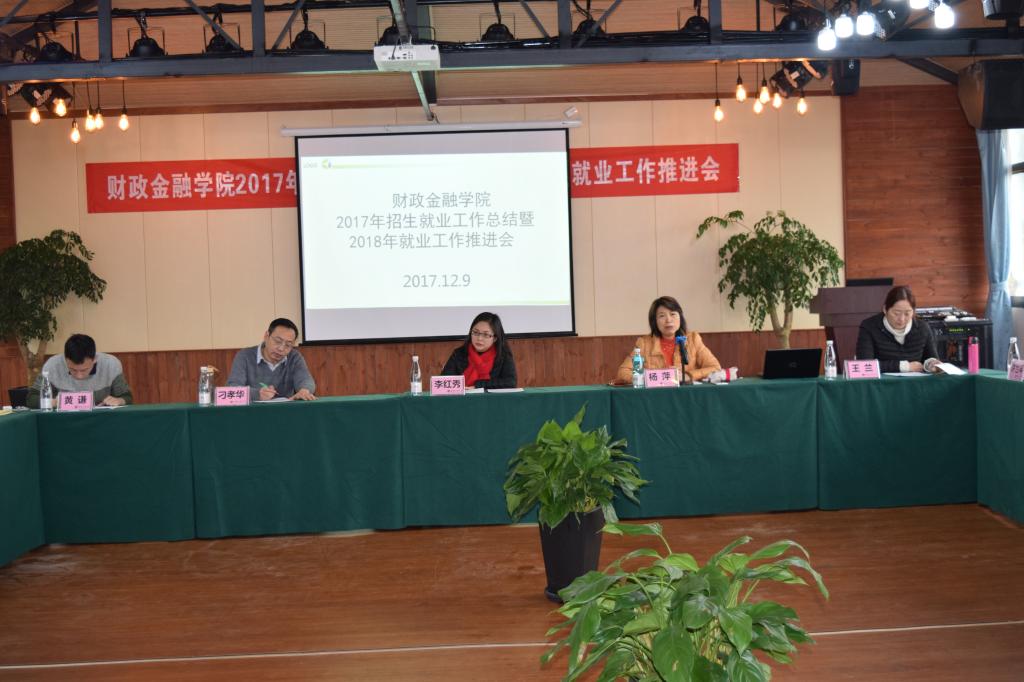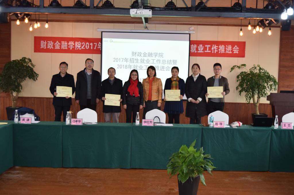 学院党政领导、各系主任、毕业班辅导员及教师代表参加了此次会议,会议议程共有八项。一是主持人黄谦副书记介绍了来自保险业、银行业的参会嘉宾;二是杨萍书记及兰丽娟老师代表学院总结了2017年就业业工作;三是表彰2017届毕业生工作先进集体和个人。根据财金学院【2015】02号文件精神及2017年6月14日学院党政联席会议纪要,经过学院学团办初次评选和学院毕业生就业工作领导小组联评,12月6日,学院党政联席会和院务会集体商议,决定授予财税系等4个系为“财政2003网站太阳集团毕业生就业工作先进集体”;授予白玉等9位同志为“财政2003网站太阳集团毕业生就业工作先进个人”。四是系主任代表尚可文教授发言。他提出要做好学生的就业工作,首先要以需求为导向优化人才培养方案,其次要注重考研动员及全方位辅导,第三要充分利用校友资源拓展就业渠道,第四要鼓励帮助学生参加各种学科专业比赛;五是毕业班辅导员代表文理老师发言。他分享了自己三届毕业生的代班经验,也发表了几点学生就业工作的思考。六是嘉宾代表发言。中国人保渝北支公司副总经理李红秀女士分享了自身的职业成长经历,并从用人单位的角度分析了大学生就业存在的问题。七是自由发言交流。保险系主任谭湘渝、金融系主任许世琴等参会老师都从各自系的实际状况发表了自己的观点和看法。八是刁孝华院长总结发言。刁院长指出,要做好大学生的就业工作需要政府、学校和社会三方共同努力。现代社会,科技进步迅速,社会环境变化较大,人们的思想观念也在发生转变,大学生就业工作需要不断创新和优化,各专业需要不断调整优化培养方案,大力鼓励和支持学生参加专业学科竞赛,提高学生综合能力和素质,加强学生人生(职业)规划教育。辅导员队伍人员要充足,逐步实现带班专业固定,从而更有利于协同配合,做好学生管理工作。