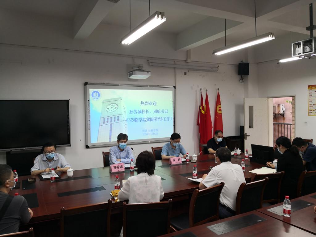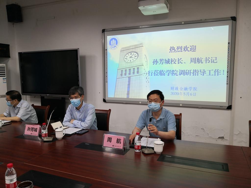 5月6日上午,校长孙芳城、校纪委书记周航一行到财政2003网站太阳集团调研指导学科建设和疫情防控工作,并在田家炳313会议室召开调研座谈会。教务处处长靳俊喜,研究生院院长田双全,以及学院领导、各系主任、财税系全体教师和部分辅导员参加了会议。