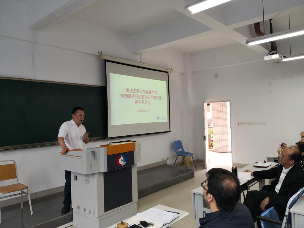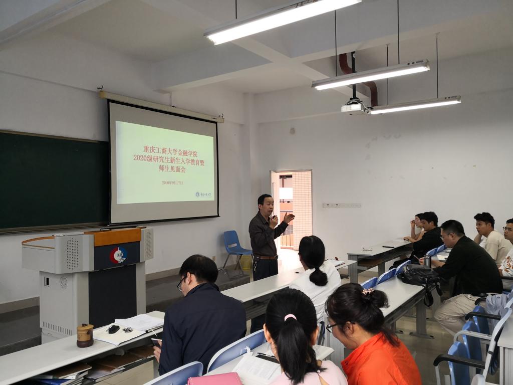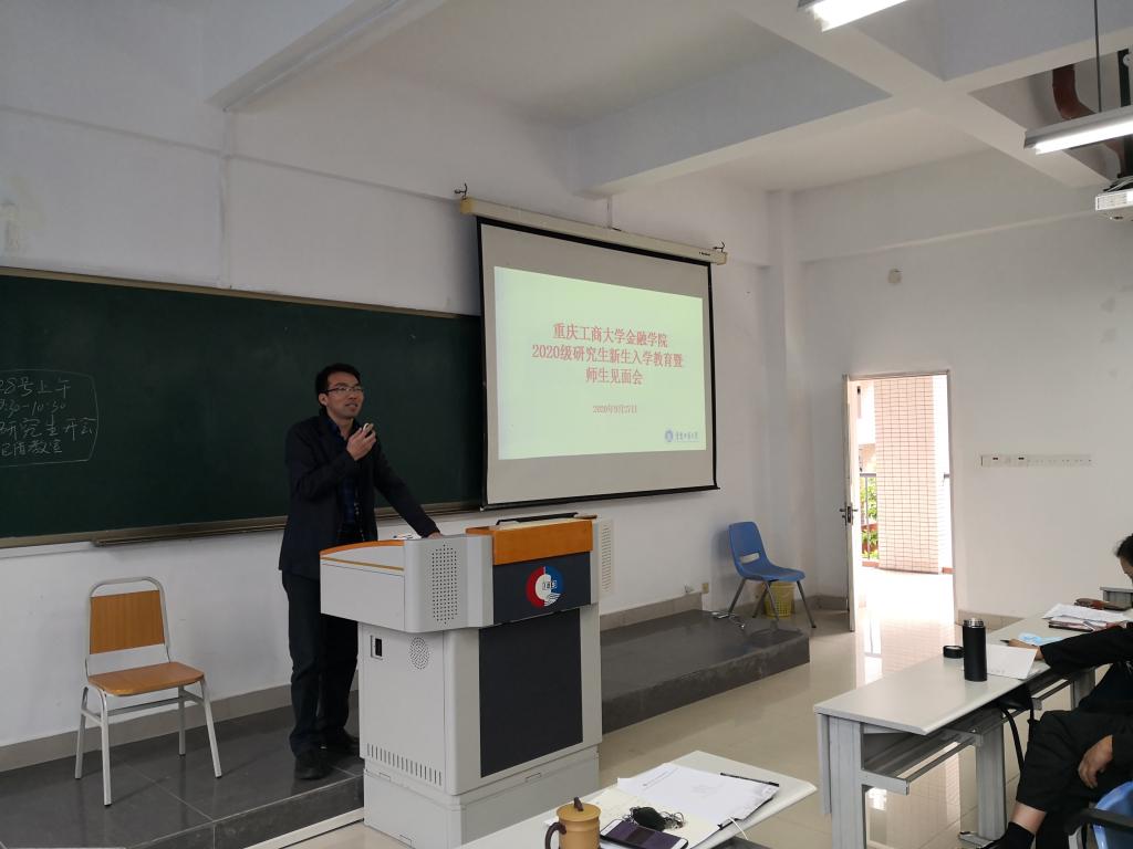 导师代表靳景玉教授就何为研究生,金融研究生的特点做出了介绍,并对研究生新生们提出了尊重科学、善于发现问题,善于利用平台,充分共享交流互相学习以及强身健体劳逸结合的要求。
