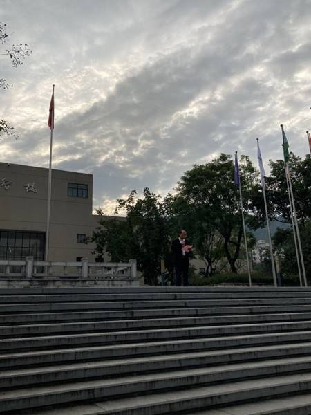 伴随着仪仗队整齐划一的步伐,仪仗队员们昂首挺胸、英姿飒爽,身材挺拔,代表着新时代青年意气风发的精神风貌。随风飘扬的五星红旗伴着国歌的冉冉升起,全体师生唱起国歌,行注目礼,表达了全体师生对伟大祖国繁荣昌盛的祝福和热爱。随后,王建明书记发表了热情洋溢的讲话,表达了对祖国71周年华诞的祝福,并希望同学们要坚定信念、不负韶华、矢志奋斗、报效祖国。