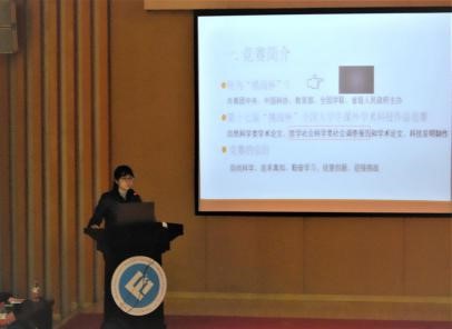 会议伊始,庞楷副院长致词,他强调了学科竞赛对大学生成长成才的重要作用,要求同学们要以自身专业为基础进行选题,形成团队力量来参加竞赛。接着,蒋老师从挑战杯简介、工商荣誉、选题、作品的撰写、注意事项五个方面对同学们进行赛前培训,她强调了选题的重要性、作品的精简性与格式的规范性,要求同学们要充分利用好数字资源。随后在坐的各位老师针对同学们现场提出的问题进行答疑。最后,余新副书记进行了总结,并对同学们提出了殷切的希望,并预祝同学们能在大赛中再创佳绩,为学院争光。