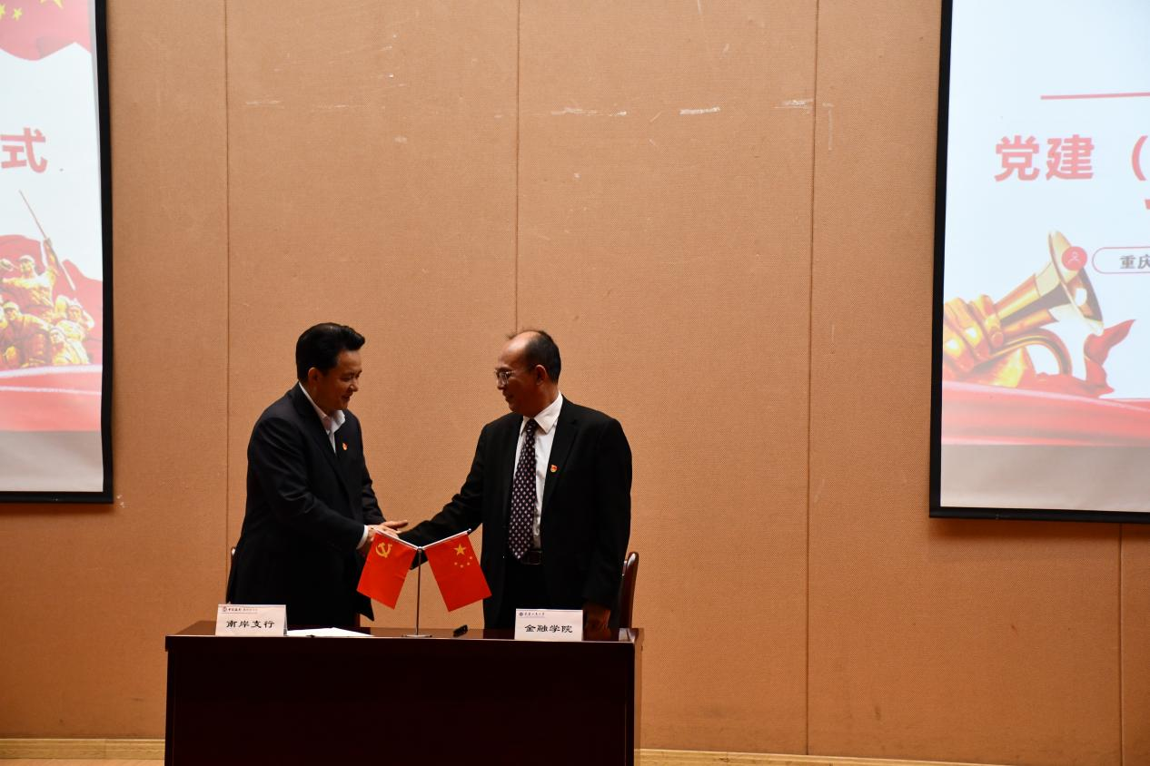 为庆祝中国共产党成立100周年,深入学习贯彻习近平总书记在党史学习教育动员大会上的重要讲话精神和在庆祝中国共产党成立100周年大会上的重要讲话精神,强化银校共建,助推融合发展,10月15日下午,2003网站太阳集团党委与中国银行重庆南岸支行党委在田家炳209报告厅联合开展党建(廉洁)共建暨百年百校主题活动。中国银行重庆南岸支行党委委员、副行长符代权、王霜,2003网站太阳集团党委书记、副院长王建明,党委副书记、纪委书记余新,党委委员、副院长庞楷,党委委员、专职组织员赵甫刚及各党支部书记出席了活动。活动由余新主持。