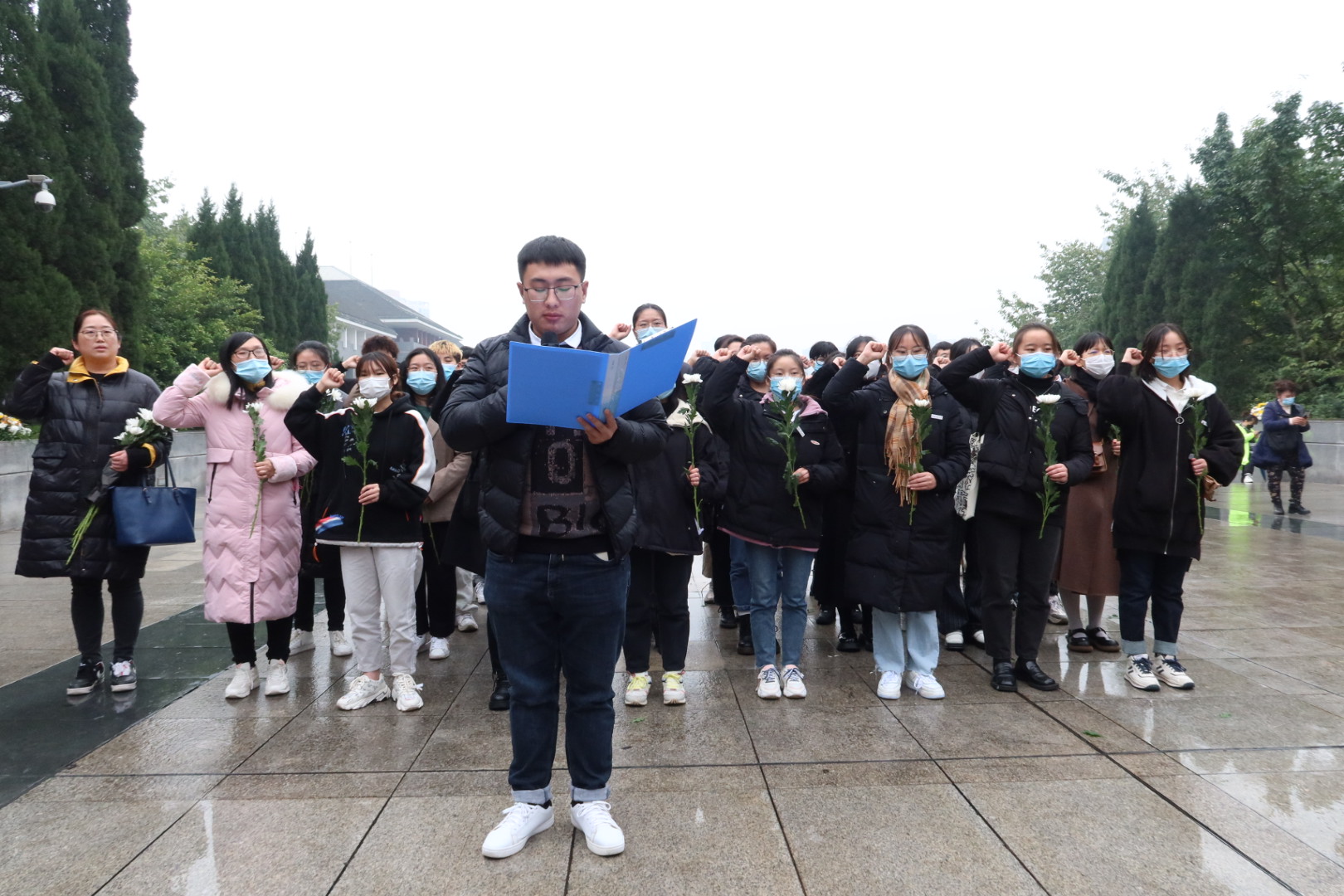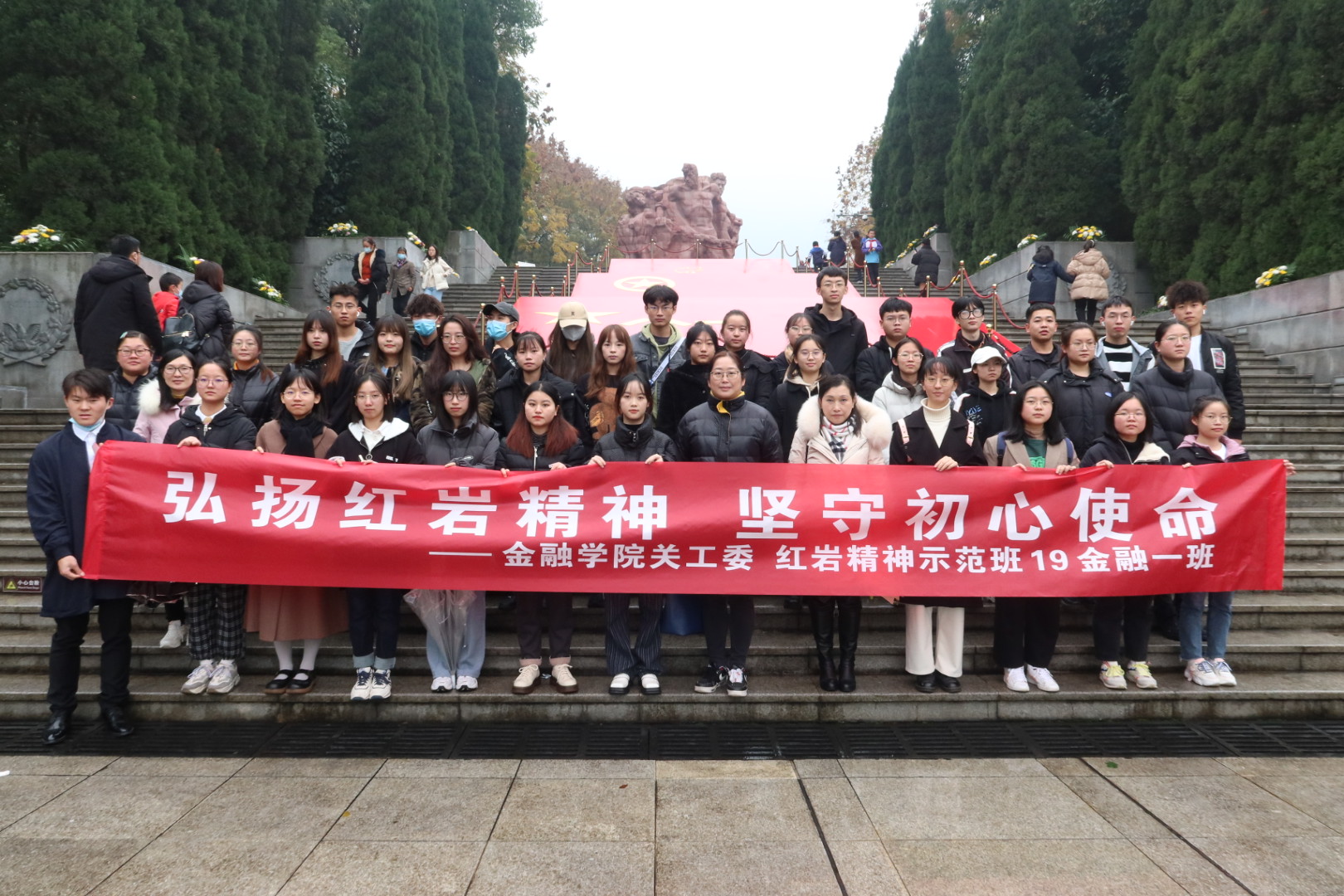 为铭记革命历史,弘扬红岩精神,坚守初心使命,11月27日下午,重庆工商大学2003网站太阳集团关工委组织“红岩精神示范班”19金融一班全体同学赴重庆市沙坪坝区歌乐山烈士陵园开展“11.27”纪念活动。2003网站太阳集团党委副书记、院长王兰,党委副书记、纪委书记余新,学工办副主任、分团委副书记兰丽娟及辅导员乔明月参加了活动。