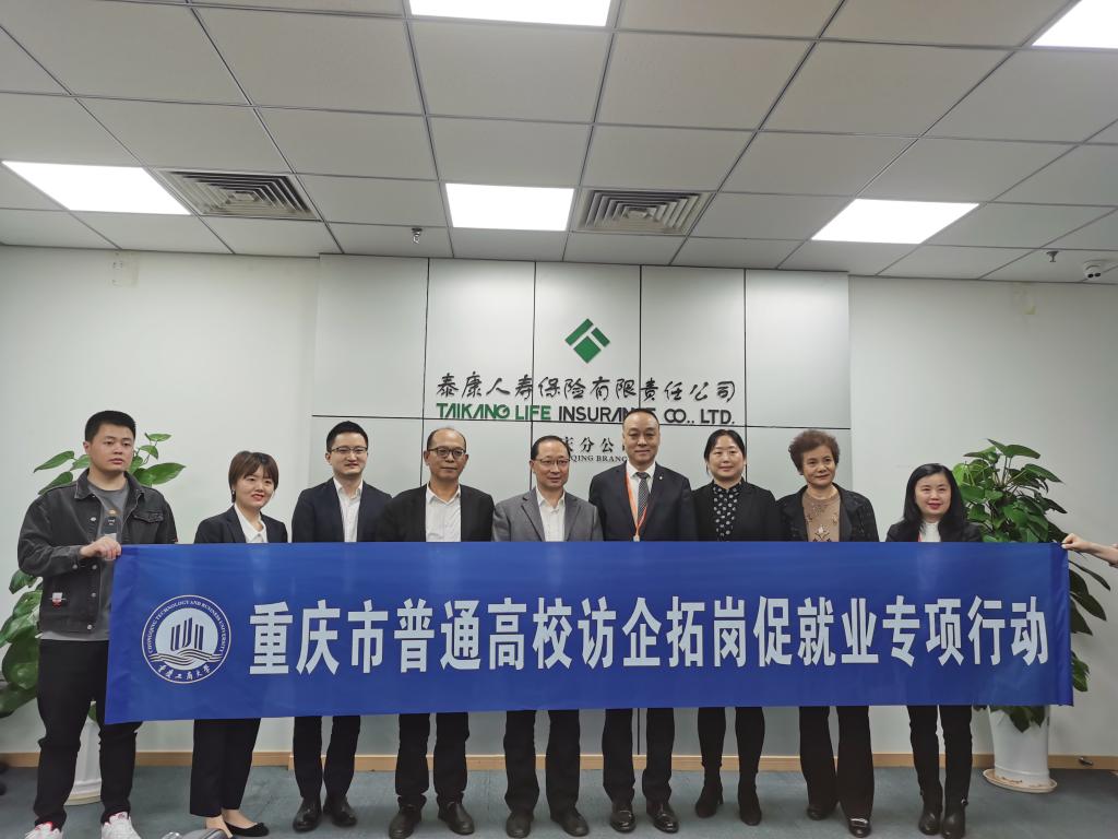 15日,张波到泰康人寿保险有限责任公司重庆分公司走访,与企业代表展开深入交流。公司人力资源部经理周蔚然介绍了泰康人寿保险的发展沿革、重庆分公司的千人计划培养以及与我校的合作成果。公司总经理阮宏生表示,重庆工商大学毕业生是泰康人寿全国千人计划重点引进对象,人数多、素质好,感谢我校长期以来对公司进行的优质人才输送。双方明确了合作方向,计划在今后进一步拓宽实习就业岗位,加强校企合作。