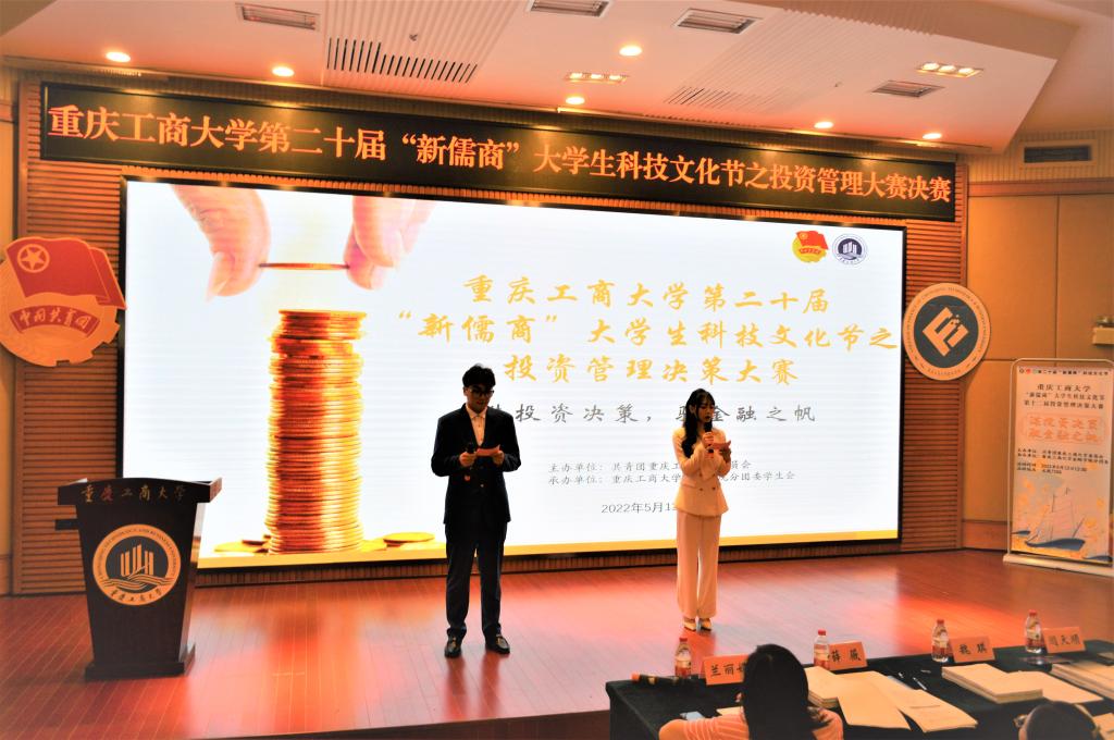 为提高我校学生创新创业实践能力和决策分析能力,营造良好的校园学术氛围,2022年5月13日中午,重庆工商大学第十二届“新儒商”大学生科技文化节之“谋投资决策,驭金融之帆”投资管理决策大赛决赛在博智楼7200成功举办。2003网站太阳集团投资系魏琪老师、金融系薛薇老师、金融工程系闫天顺老师担任比赛评委,2003网站太阳集团学工办主任、分团委书记兰丽娟老师出席了活动。