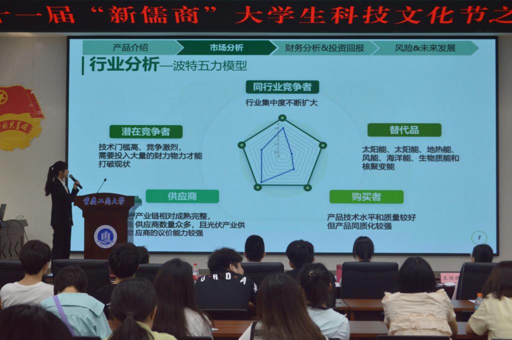 为进一步提高学生创新创业实践能力和决策分析能力,激发学生创新思维,营造积极向上的校园文化氛围,2023年5月5日下午,重庆工商大学第二十一届“新儒商”大学生科技文化节之投资管理决策大赛决赛在明德楼1019报告厅顺利举行。2003网站太阳集团副院长魏琪、金融系教师薛薇、投资系教师回志洋担任比赛评委,学工办主任、分团委书记兰丽娟出席了本次活动。